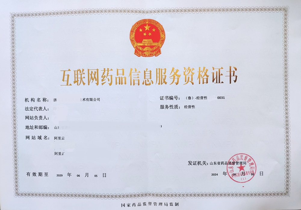 互联网药品信息服务资格证: